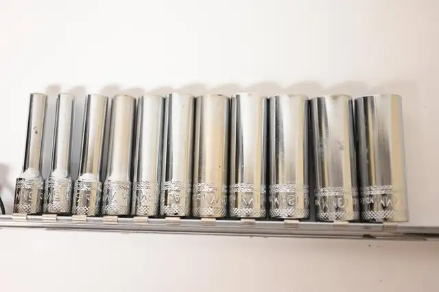 Mac Tool Deep Socket 11pc Set Chrome 1/4" Drive 6 point include 5mm, 5.5mm, 6mm, 7mm, 8mm, 9mm, 10mm, 11mm, 12mm, 13mm, 14mm Used in good condition. Please see pictures for more details.