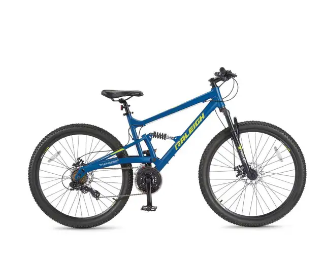 The item is a Raleigh Tracker Dual-Suspension Mountain Bike.