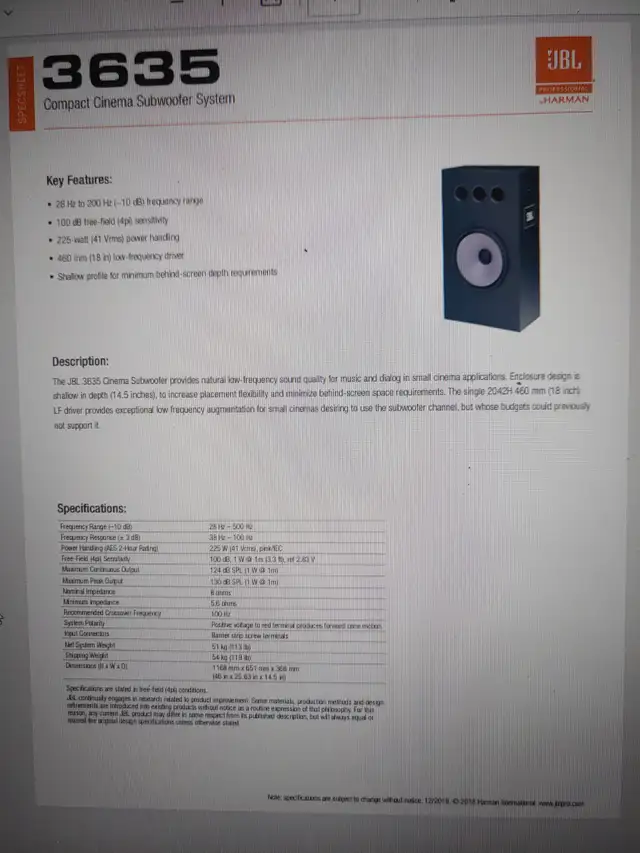 I am selling this subwoofer that is great for home theatre , actually made to work behind a screen but you can place it where you like. it is fairly big and is passive meaning you would have to use an amplifier to run it.