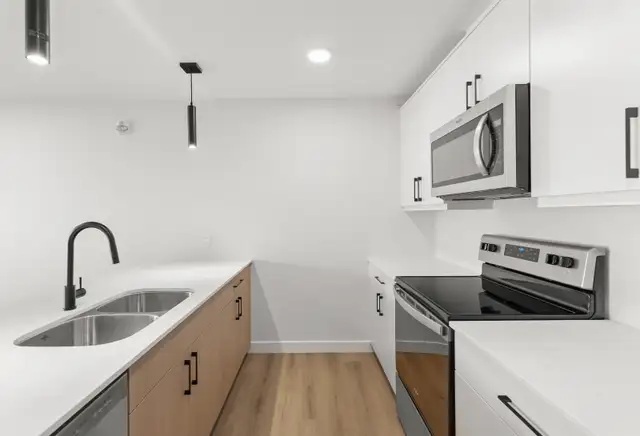 This elevator-serviced apartment complex features spacious units with luxury vinyl floors throughout, modern kitchens, quartz countertops, stainless steel appliances and in-suite laundry.