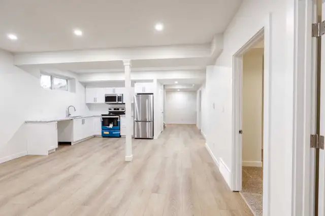 Bright & spacious two-bedroom basement suite in the southwest of Edmonton! You will love this beautiful custom-built luxury suite. Located in the very desirable neighborhood of Windermere, this 1000 square foot suite boasts a separate entrance, two large bedrooms, a full bathroom and its own washer dryer. As you enter, you'll be in awe of the 9 foot ceilings and high end finishes in this beautiful suite. You'll enjoy an open plan kitchen with quartz countertops and stainless-steel appliances, with plenty of space for a dining table, plus a large living room. There is also plenty of storage space in the two large bedrooms, including a double closet in the Master. The suite is completely independent of the main house with its own high-efficiency furnace and Laundry Room. With the Anthony Henday just around the corner and the Windermere Crossing & Currents of Windermere Shopping Center just five minutes down the street, access and convenience couldn't be easier.