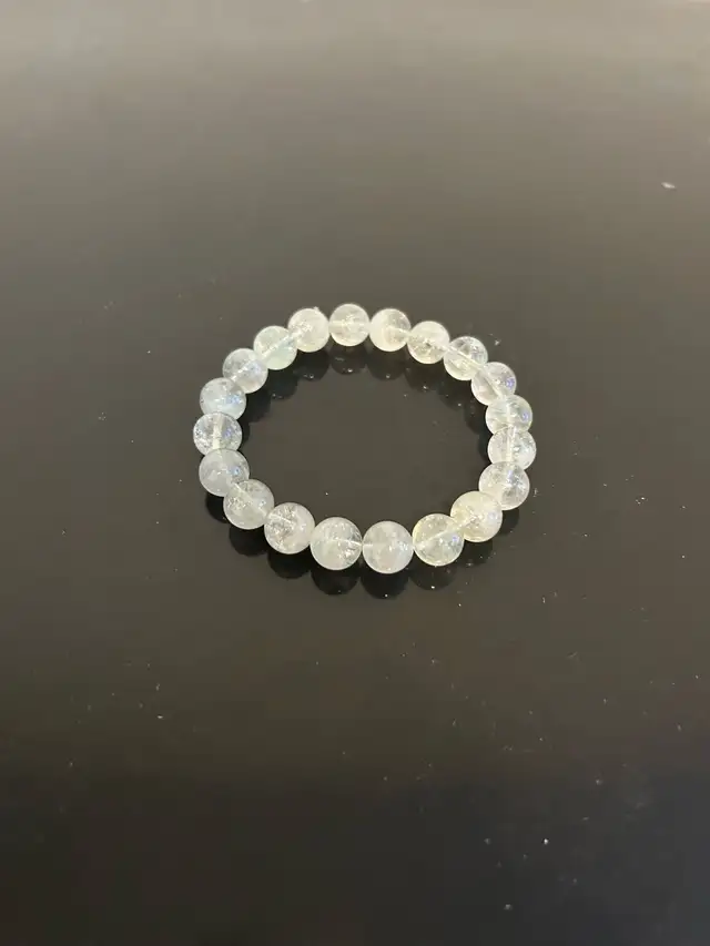 This is a delicate beaded bracelet, perfect for adding a touch of elegance to any outfit. The beads catch the light beautifully, giving it a subtle sparkle. This bracelet is in good condition. It's just waiting to be worn and admired!