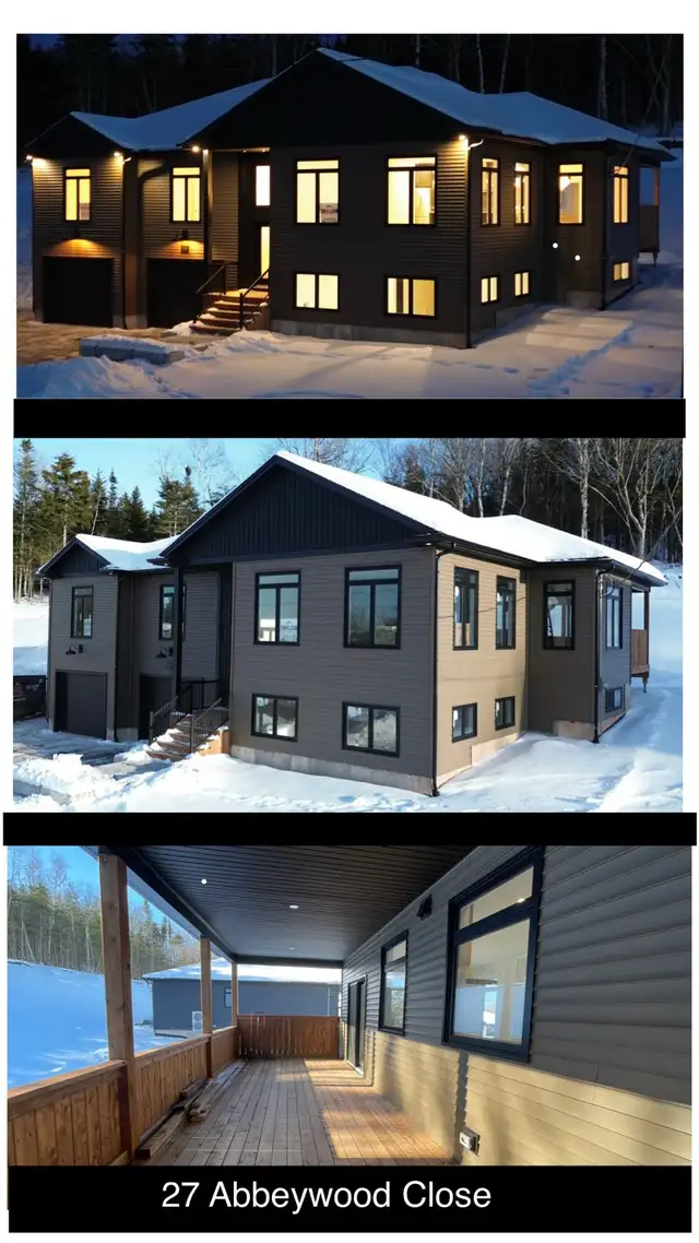OPEN HOUSE ALERT! Join us for an exclusive viewing of our brand new MK Taylor Enterprises Ltd. project, located at 27 Abbeywood Close in the serene Highlands of Queensbury, Quispamsis NB. Dates: Saturday February 14th and Sunday February 15th , 1:00 - 3:00pm. This stunning home boasts an impressive main level exceeding 2000 sq ft, featuring 9ft ceilings, expansive transom windows, and a luxurious open-concept kitchen and dining area with a butler pantry and prep sink. Enjoy the private 280 sq ft covered rear deck, perfect for outdoor entertaining, with direct access to the master ensuite bathroom. Ensuite bath includes a relaxing soaker tub, large Roman shower, and a water closet. Key features of this home: 3 bedrooms upstairs, including a master with well appointed walk in closet Dedicated main floor laundry Fully ducted central heating and cooling system Premium windows, doors, and siding Quartz countertops 8yr new home warranty Oversized double garage (886 sq ft) Lower level consists of 3rd bathroom with walk-in shower, 4th bedroom, large bright family room, and plenty of storage, kitchenette is also optional We look forward to welcoming you to this exceptional property. Priced at $795,000 HST included (final pricing determined by the builder based on buyers requirements) Phone 506-271-3877 for details