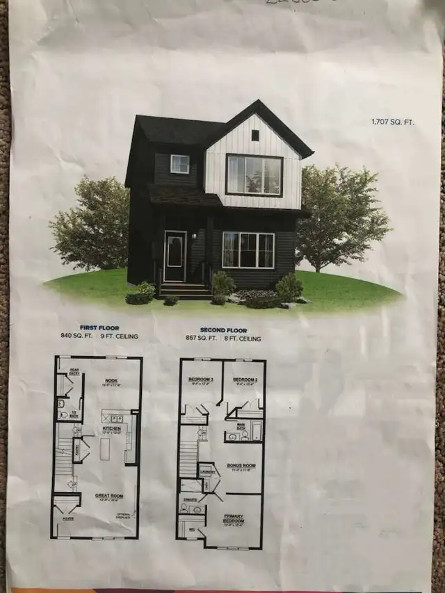 Three bedroom and 2.5 bath and a Bonus room with 1,707 sq.ft