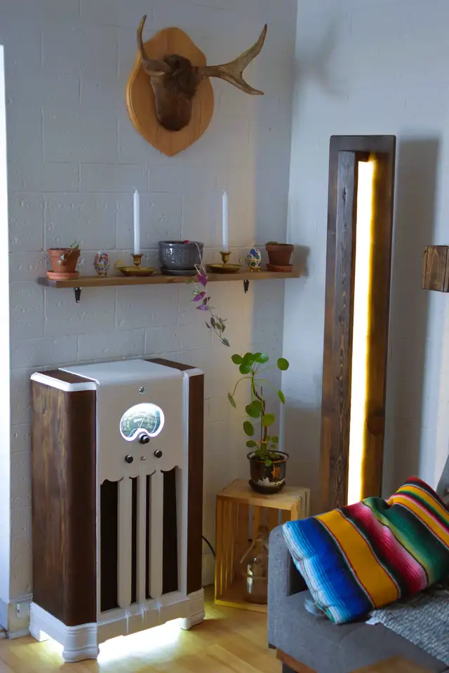 Fabriquées à partir de meubles antiques originaux des années 1920 à 1940, chaque unité est méticuleusement restaurée puis transformée en un système de son sans fil de haute performance.