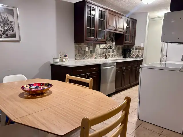 This 1000 sq. ft, main floor, 2 bedroom features a new modern kitchen with dishwasher, new