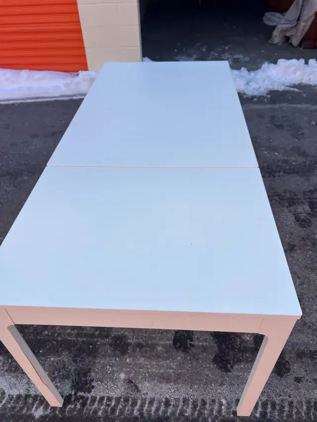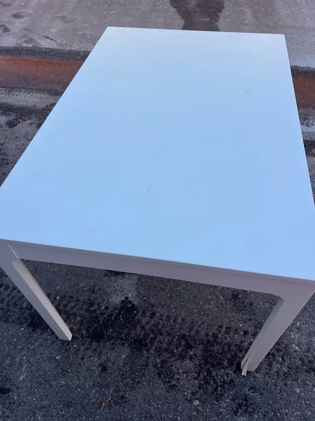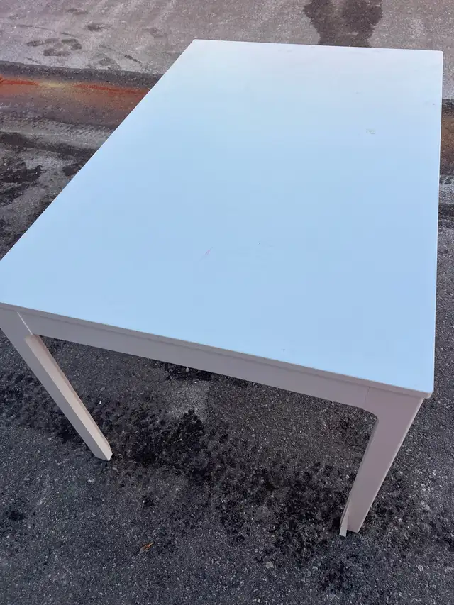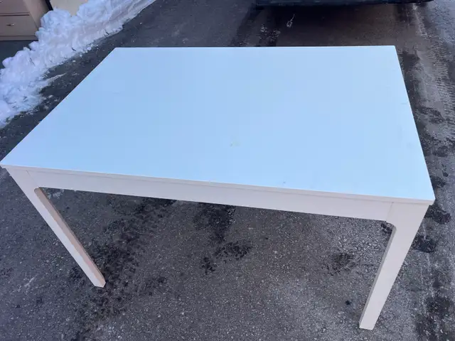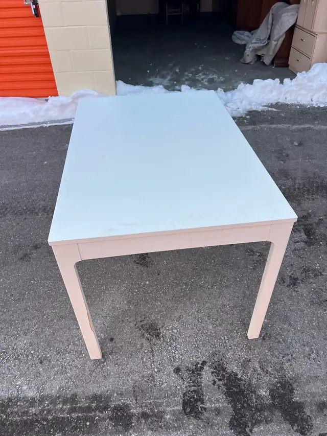 Selling a used simple white dining table. It's in good condition and ready for a new home. Perfect for a small space or big.