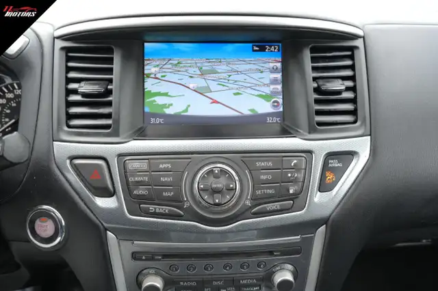 - Radio: Bose Premium Audio System w/13 Speakers -inc: Bose Acoustic Waveguide technology, NissanConnect w/navigation, mobile apps and services, 8" colour display w/multi-touch control and voice recognition, Bluetooth Hands-free phone system, streaming audio via Bluetooth wireless technology, MP3/WMA CD playback capability, auxiliary audio input jack, 2 USB connection ports for iPod interface and other devices, RCA auxiliary video input jack, SiriusXM satellite radio, SiriusXM Traffic, 2 12-volt DC power outlets, Radio Data System (RDS) and 120 volt AC power outlet