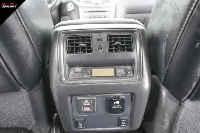 - Radio: Bose Premium Audio System w/13 Speakers -inc: Bose Acoustic Waveguide technology, NissanConnect w/navigation, mobile apps and services, 8" colour display w/multi-touch control and voice recognition, Bluetooth Hands-free phone system, streaming audio via Bluetooth wireless technology, MP3/WMA CD playback capability, auxiliary audio input jack, 2 USB connection ports for iPod interface and other devices, RCA auxiliary video input jack, SiriusXM satellite radio, SiriusXM Traffic, 2 12-volt DC power outlet, Radio Data System (RDS), 120 volt AC power outlet, tri-zone entertainment system w/dual head-restraint-mounted 203 mm (8") monitors, remote control, two wireless headphones, rear HDMI input and USB port for video playback and DVD video playback capability