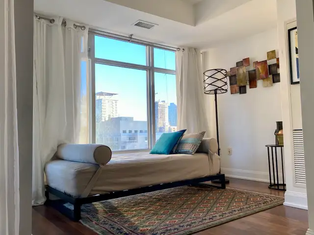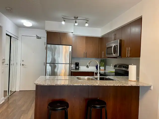 In the vibrant midtown neighbourhood of Yonge & Eglinton. across from Eglinton subway station. Quantum north tower by Minto (2191 Yonge) Elegant lobby. Steps away from metro, farm boy, rexall, shoppers,restaurants