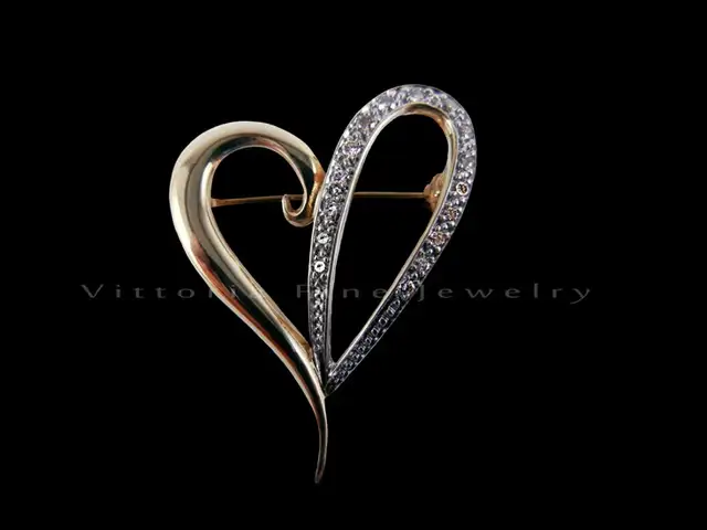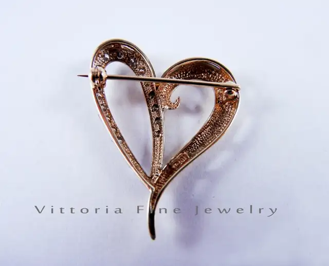 This is a beautiful 0.24 CT diamond 10Kt yellow gold brooch in heart shape. Set with 16 round brilliant cut Diamonds.