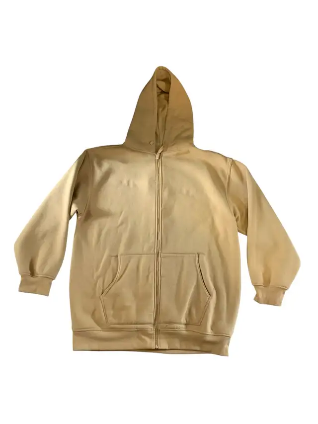 Stay warm and comfortable with this classic full-zip hoodie in a versatile light brown / tan color. Perfect for everyday wear, layering, or casual outings.