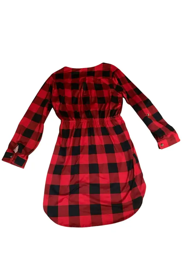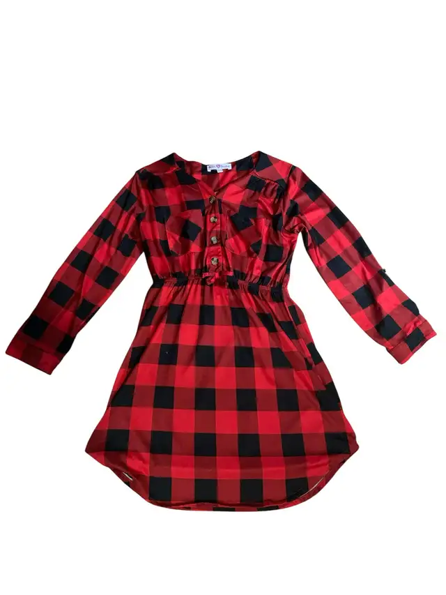 Stay stylish and cozy with this beautiful Bella & Birdie red and black buffalo plaid dress. Perfect for fall, winter, or holiday season wear!