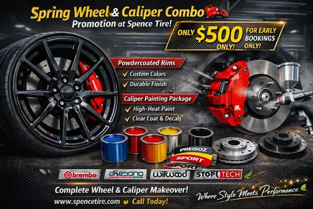This spring, upgrade your ride with our Powdercoating Rim Refinishing Caliper Painting Combo at Spence Tire 90 Melford Drive, Unit 1, Scarborough.