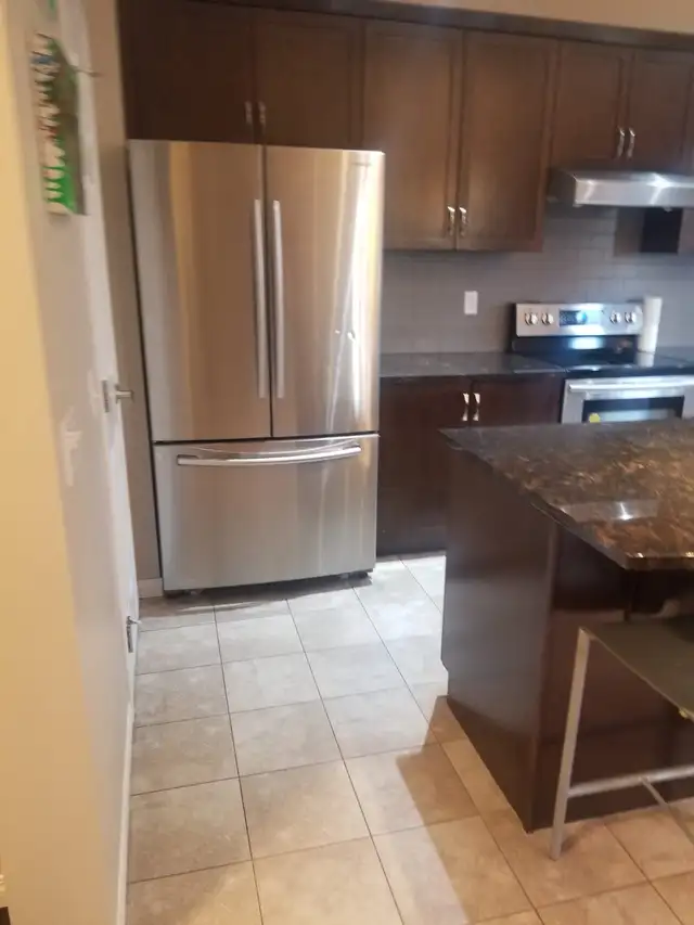 • Stainless steel fridge, stove, and dishwasher