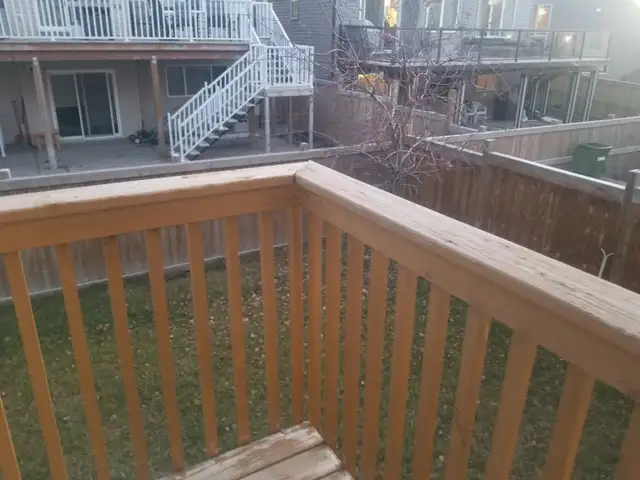 • Deck with stairs leading to a large fenced backyard