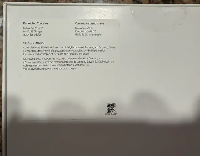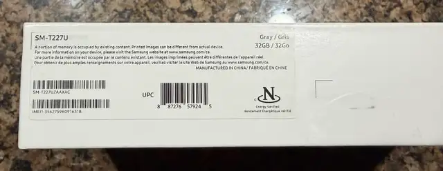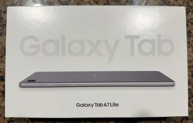 Selling a New Samsung Galaxy Tab A7 Lite in gray, featuring 32GB of storage. This compact tablet is perfect for on-the-go entertainment and productivity. The box has some slight damage from storage.