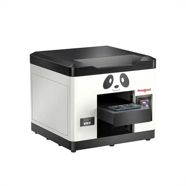 A4 UV printer applies the typical Panda design of Procolored and is upgraded with a sleeker and more seamless appearance. It's capable of printing quick-dried graphics on solid substrates, including: phone cases, leather, acrylic, lithography, cards, CD, USB flash drive, nameplate, and so forth.