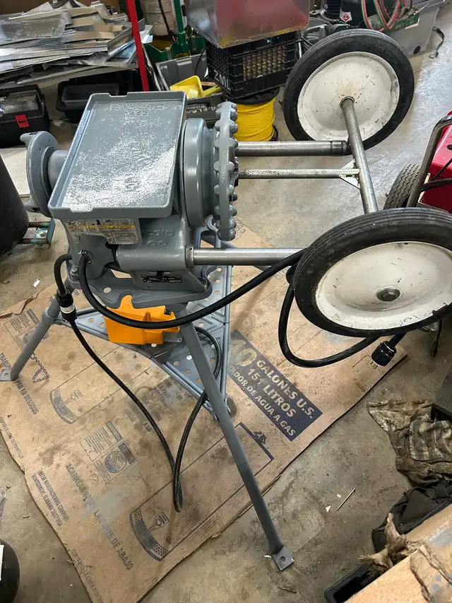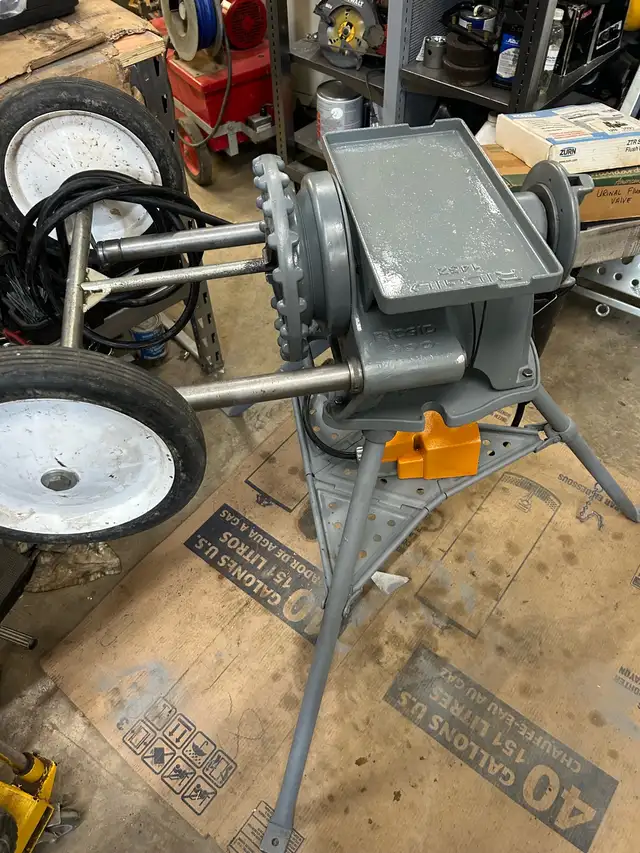 Ridgid 300 Threader c/w cutter, reamer, 1-811 head, stand, tool shelf, and transport wheels. Unit checked out and ready to work. CALL or TEXT 306-961-3199 if interested. $2500.