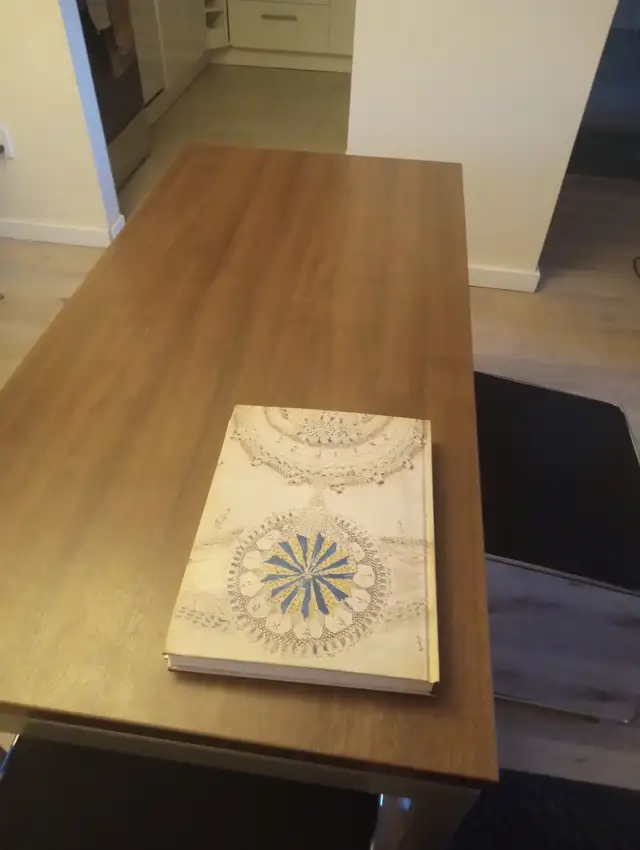Solid Wood Dining Table or Desk, heavy duty metal frame and 2 chairs included,