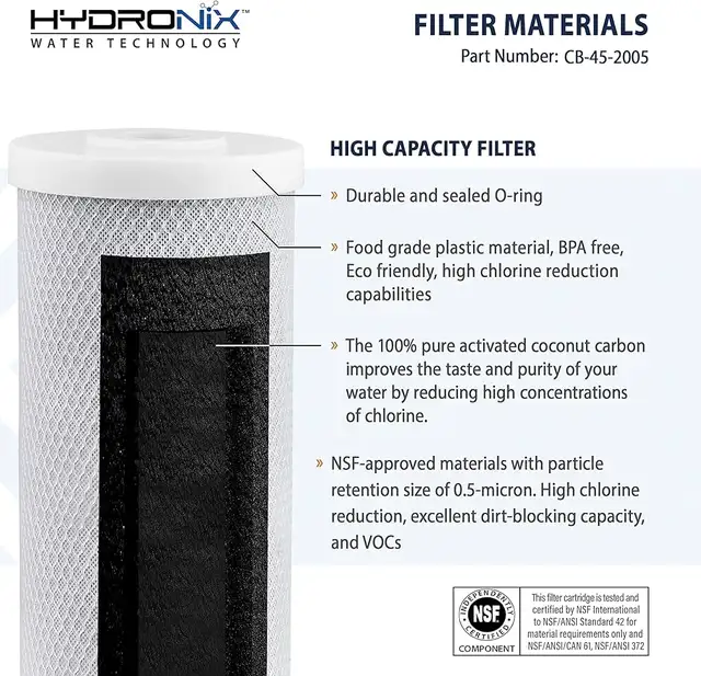 Certification: NSF certified for the reduction of lead, cysts, and VOCs.