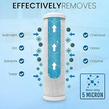 Sediment Filter (e.g., Polypropylene): Captures large particles, rust, sand, dirt, and silt, which protects the subsequent filters from clogging.
