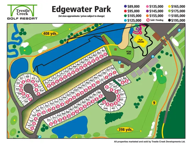 Lot #461, backing onto golf course in Edgewater phase. Firepit, picnic table, 50amp, water and sewer year round deep services. Very near water park, paved roads throughout, Sale price is $130,000. Lease for season (May 1 to Oct 31, 2027) includes condo fees, power bills, all expenses except golf fees, $6500. Call Henry at 780-913-6510