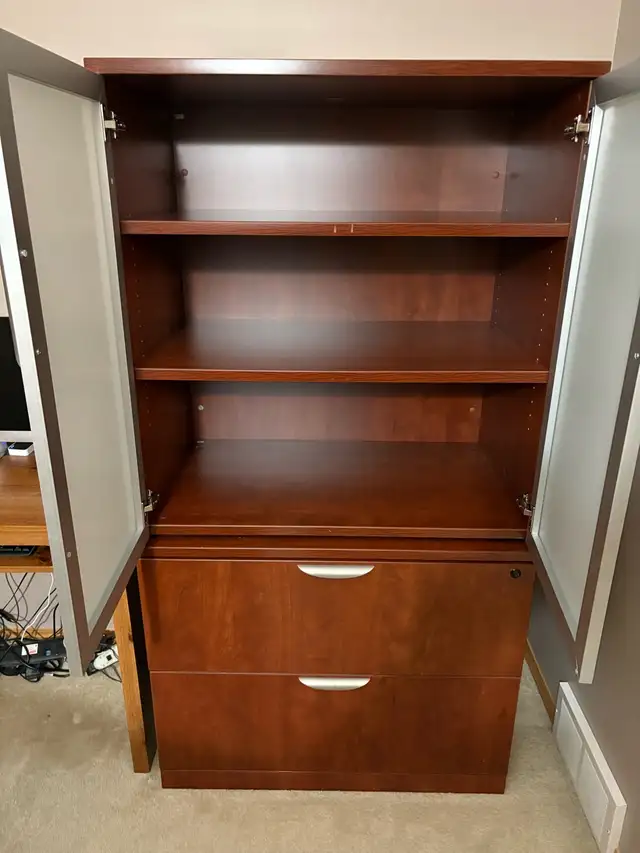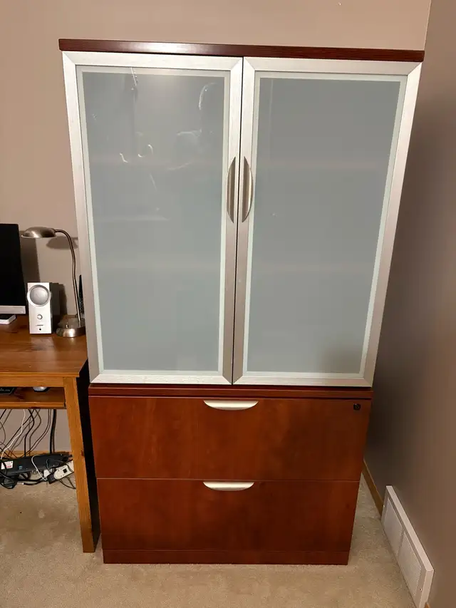 2 piece Solid lateral file cabinet with matching storage cabinet.
