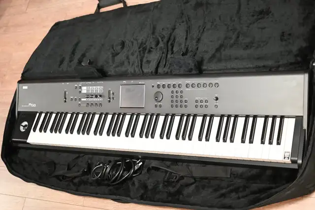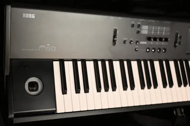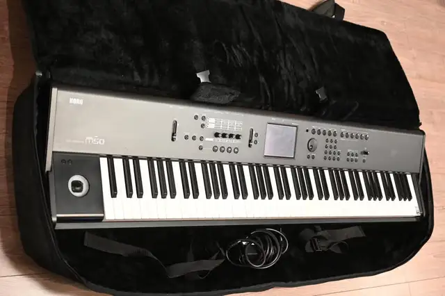 Keyboard Korg M50 61-Key Music Synthesizer Workstation Keyboard with bag in working condition with a bit of Scratches NO dent. Please see pictures for more details.
