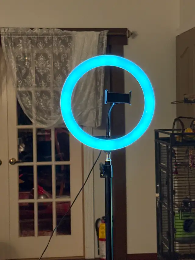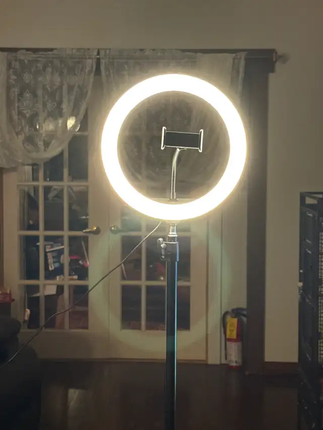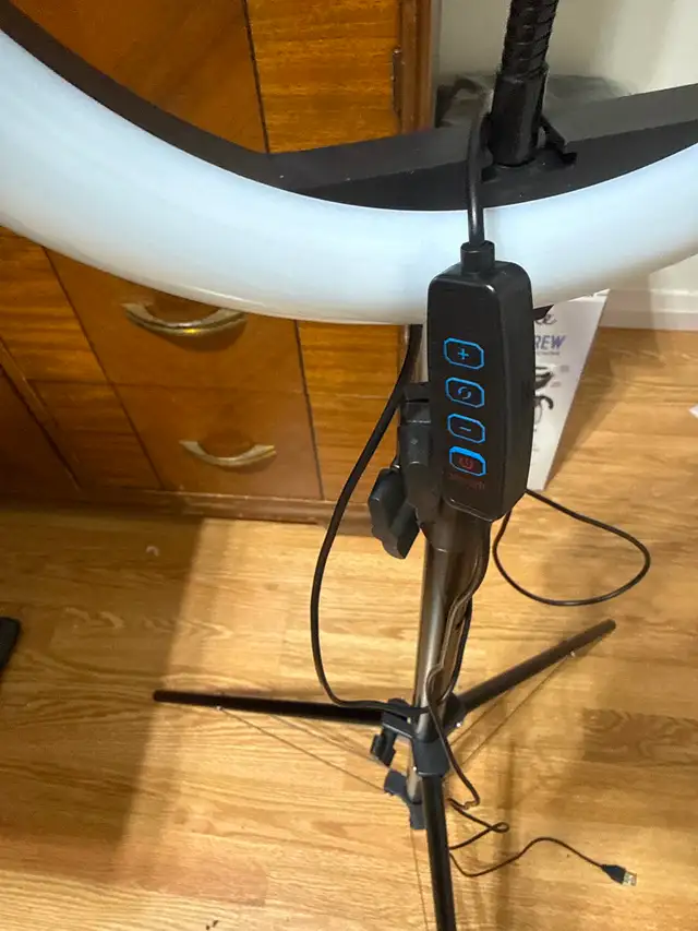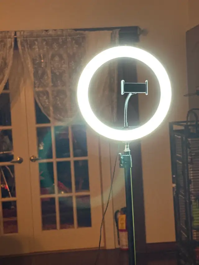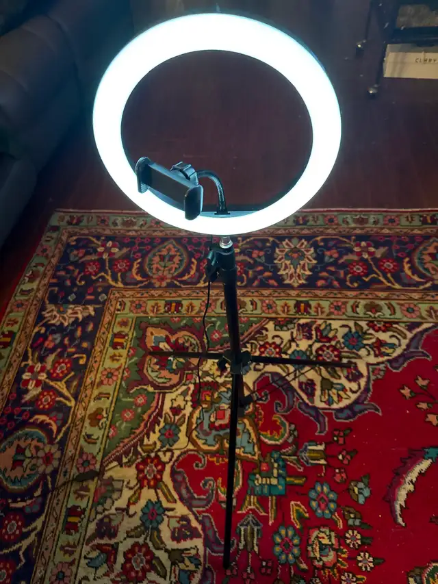 POD cast light on stand. Can adjust to 5'. High. Has switch to change light intensity. Has a dimmer. Built in phone holder. Asking $25. Like new condition. Call 204-430-4131