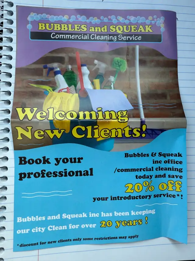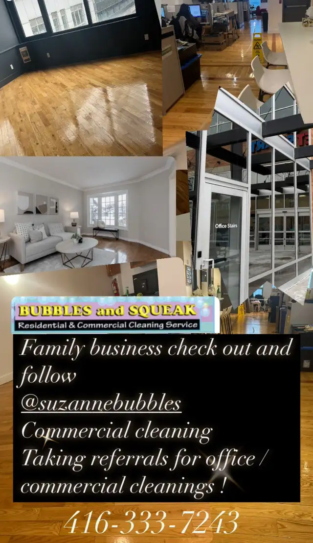 Here's the work office / common areas cleaning dusting glass cleaning bathrooms, vacuuming sweeping mopping empty garbage bins minimal