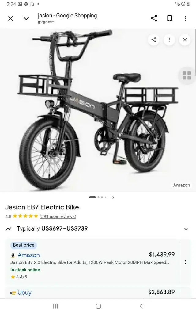 2025 jasion EB7 48 v 1000w motor in perfect condition.double shocks 20" fat tire puncture free with key and charger..payed 1439.00$ on AMAZON..contact me by email dizzyme2000@gmail.com. asking 800$