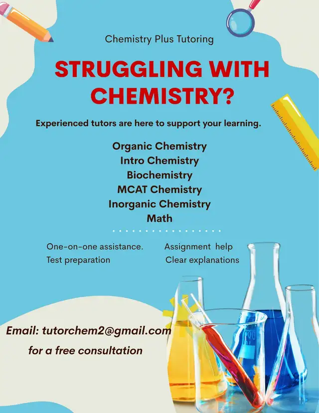 Struggling with chemistry concepts? Need help acing exams or mastering lab reports? I'm here to help you succeed!