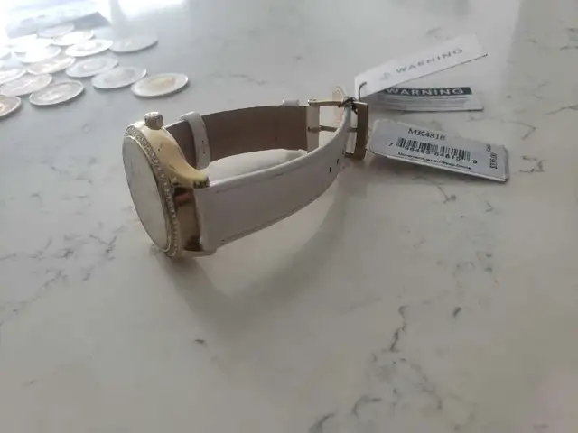 Brand new Michael Kors watch still has plastic on the face asking 250 OBO please text 431-374-9976