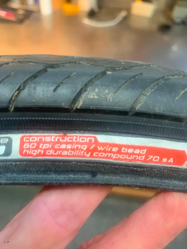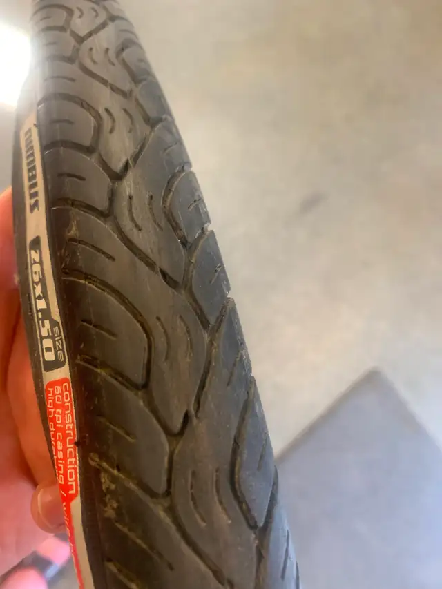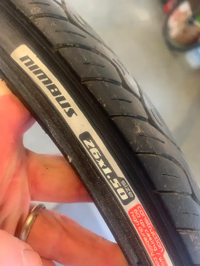 I'm cleaning the garage and you're saving money. I have a Nimbus tire with lots of life left in it. It is a 26” X 1.5” slick. It has nice deep groves to shed water. can be used outdoors on the paths and road or indoors on a trainer.