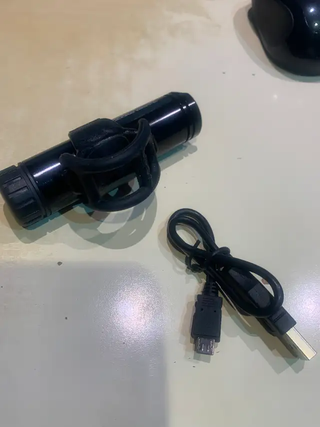 Lezyne is one of the largest manufacturers of light systems for bikes these days. Their products are well designed, durable and easy to use. This Macro Dive is in fantastic condition, and will ensure you are seen as well as that you can see what's on the road ahead. It has 300 Lumes and multiple brightness levels -even a flashing mode to make sure oncoming cars and people see you while you conserve battery life. Whether you are using this to be seen, for safety, or to see what's in our path, it has you covered. Charging cable is included. Quickly mounts to your handle bar. When off the bike its a real handy flashlight for around the home or garage, and no batteries to replace.