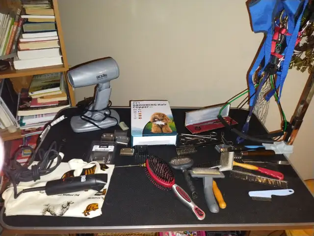 heavy duty clippers plus 1 rechargable clipper. blow dryer, scissors, multiple de-matting tools, etc.