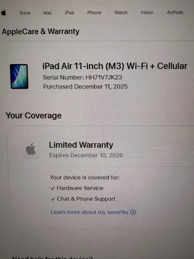Apple warranty until December 2026