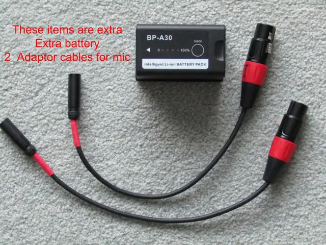 Comes with extra battery and (2) XLR adapters.
