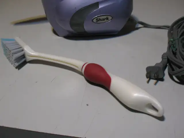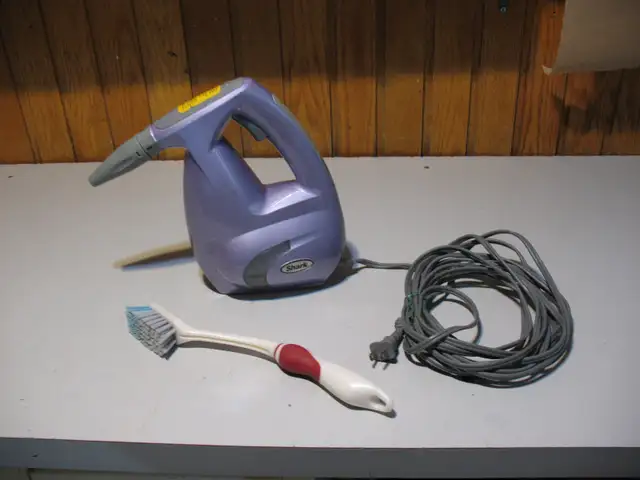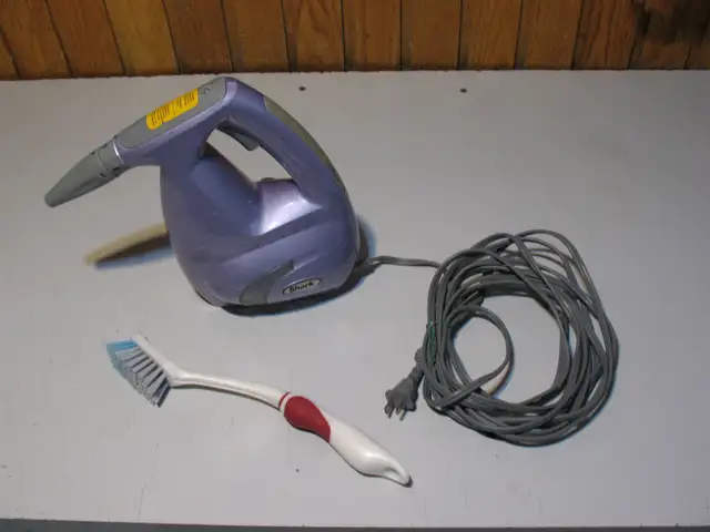Shark Handheld Portable Steam Cleaner in perfect working order. Steam cleans all surfaces. Includes hard bristle brush and extra long extension cord.