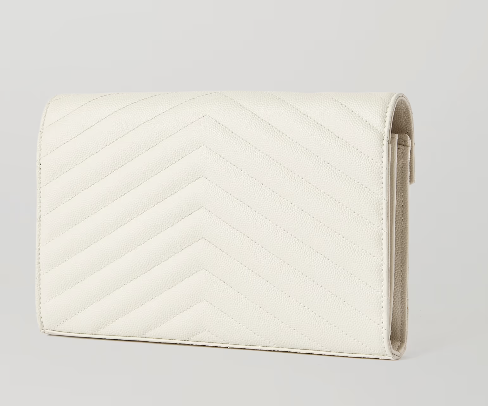 SAINT LAURENT's wallet has a slim silhouette and a pointed front flap, just like an envelope. Intended to stash the smallest essentials, it's made from textured-leather and fitted with six card slots and a slip pocket. Detach the chain strap to hold it as a clutch.