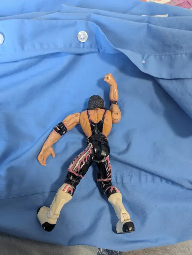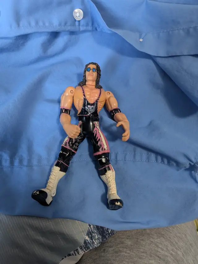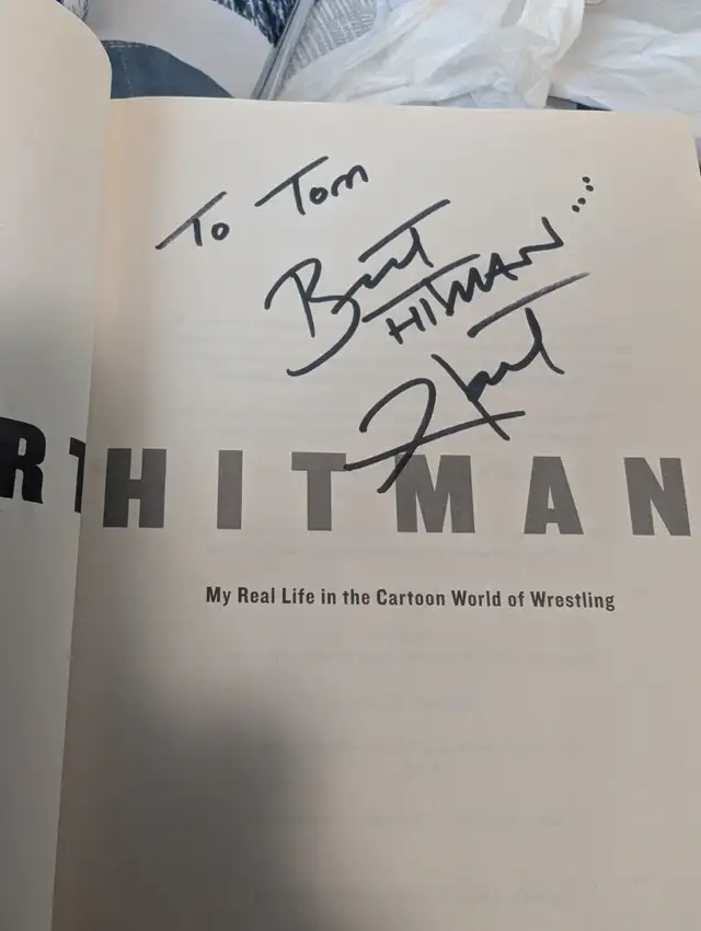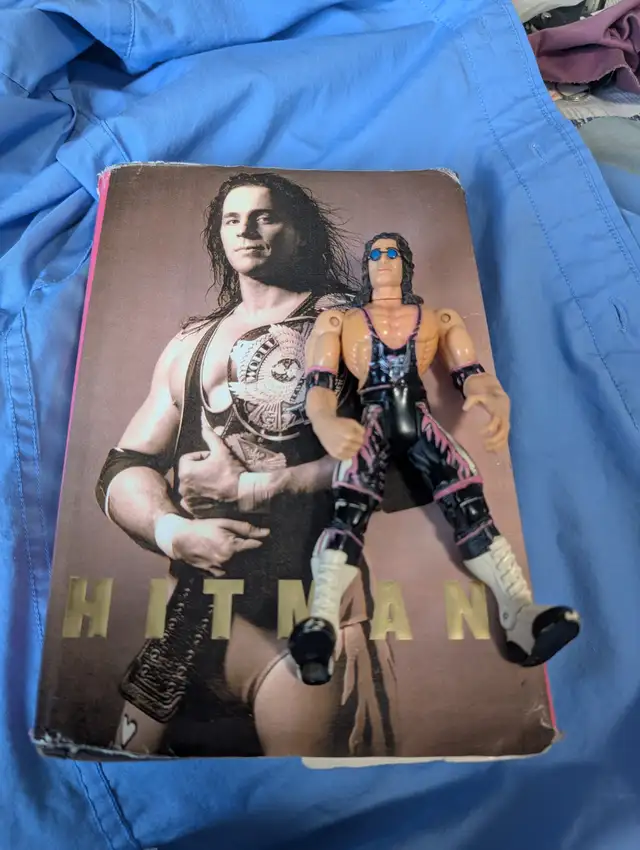 Brett Hart the hitman 2007 Book, with his signature, and plastic figurine. 6" high, WCW 1999,with articulated body. my late son worshipped this wrestler most of his young life. I hope somebody is into rasslin" the way my son was and could appreciate it. signature has been checked out for authenticity.