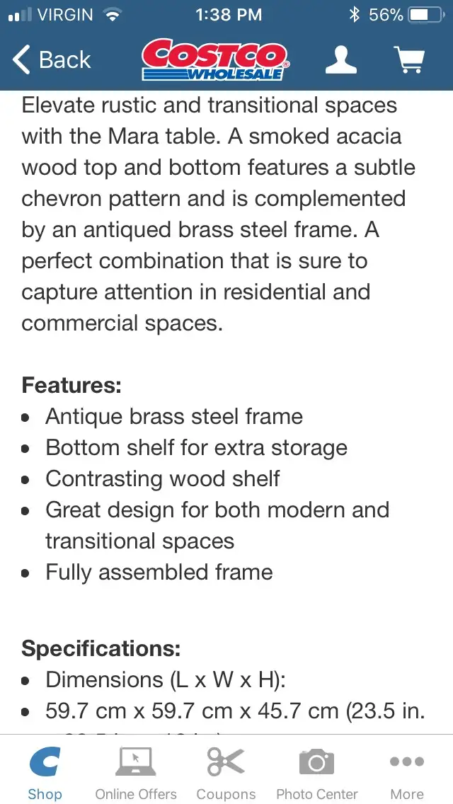 Elevate rustic and transitional spaces with the Mara table. A smoked acacia wood top and bottom features a subtle chevron pattern and is complemented by an antiqued brass steel frame. A perfect combination that is sure to capture attention in residential and commercial spaces.