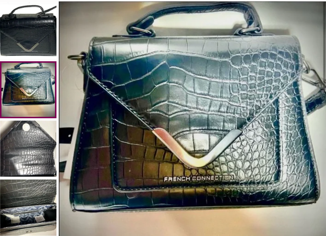 NWT French Connection Black Satchel with Croc Texture