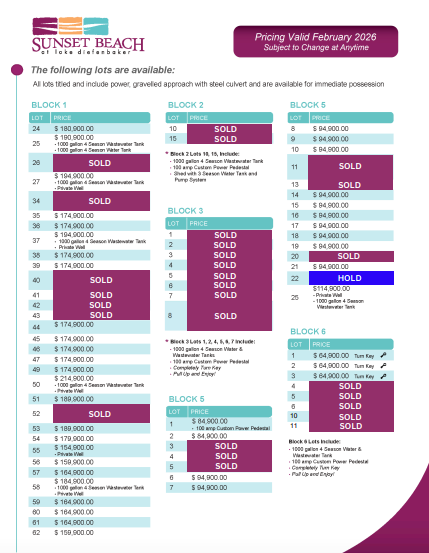 -Titled, serviced lakefront properties available for purchase and immediate possession. Lakefront lot pricing starts at $154,900 GST