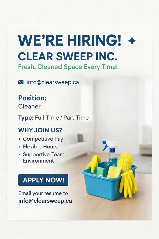 Please send us a resume at info@clearsweep.ca if you are interested, and we will set up an interview.