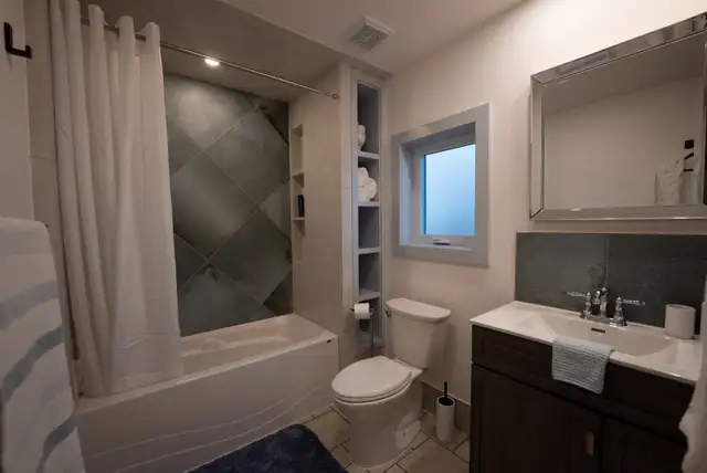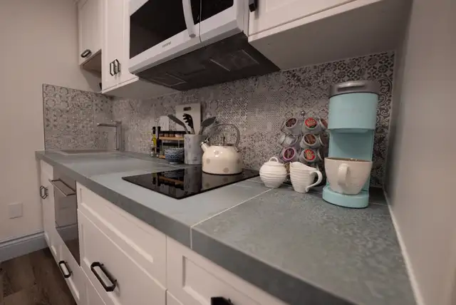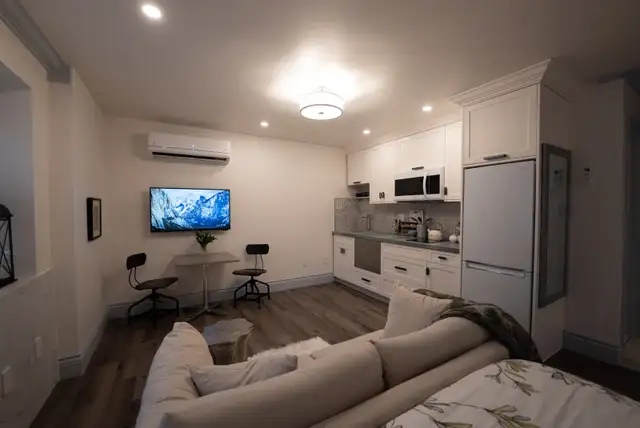 Fully renovated, sensational finishes with European appliances. Dishwasher and washer dryer combo. You will be right at HOME! - Trendy Private Coach House studio apartment overlooking Japanese inspired garden. This just renovated, thoughtfully designed space offering serene décor, In suite laundry, smart TV and workstation screen. Lovely custom kitchen equipped with built in dishwasher, microwave and Keurig. Located in the award-winning Trendy Oak Park neighbourhood Oakville. Steps away from Milbank, Park, bus route shopping, restaurants and amenities. 289-888-2010