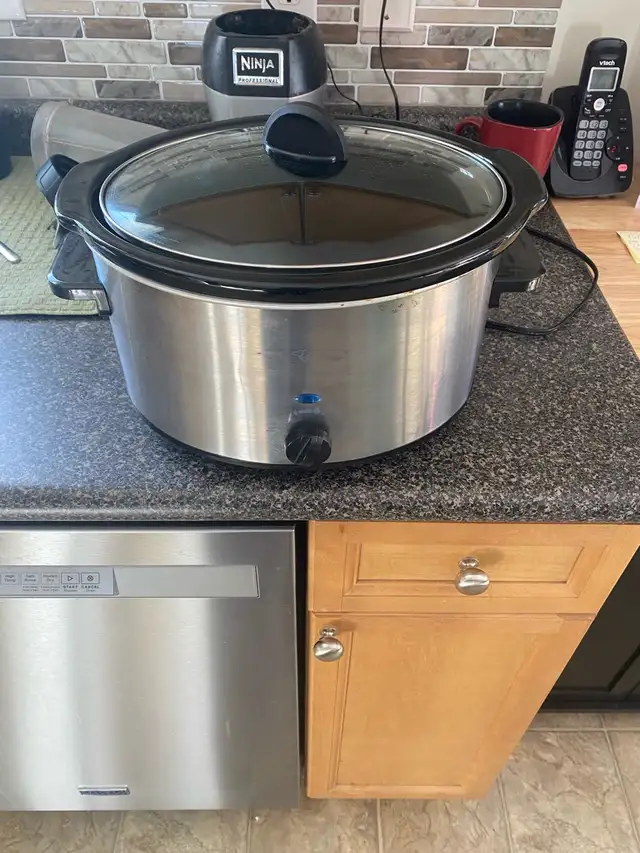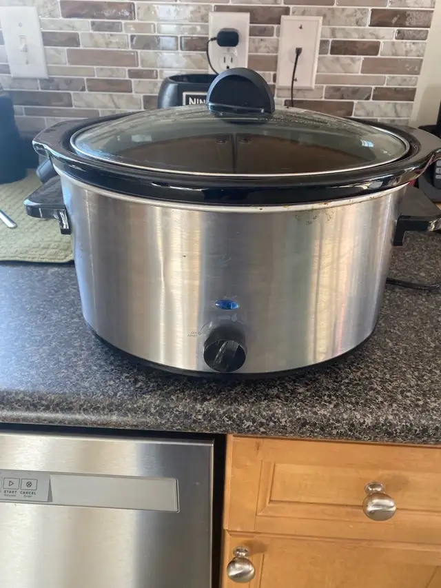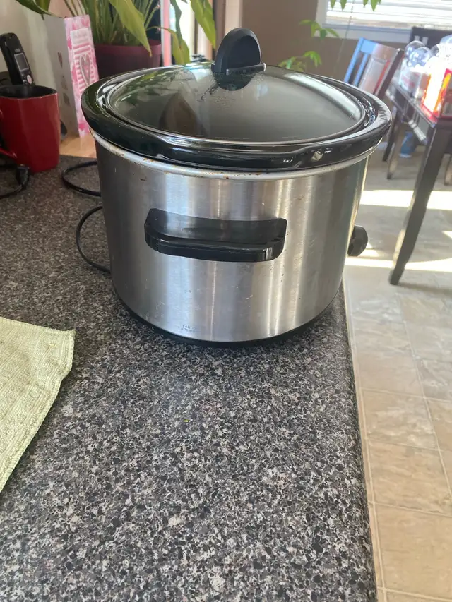 Presidents choice Crockpot. Not sure how many quarts. Works good.