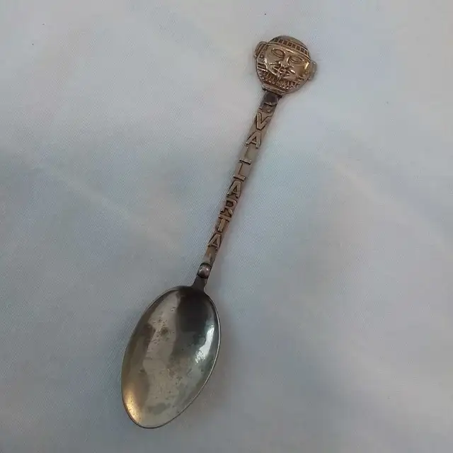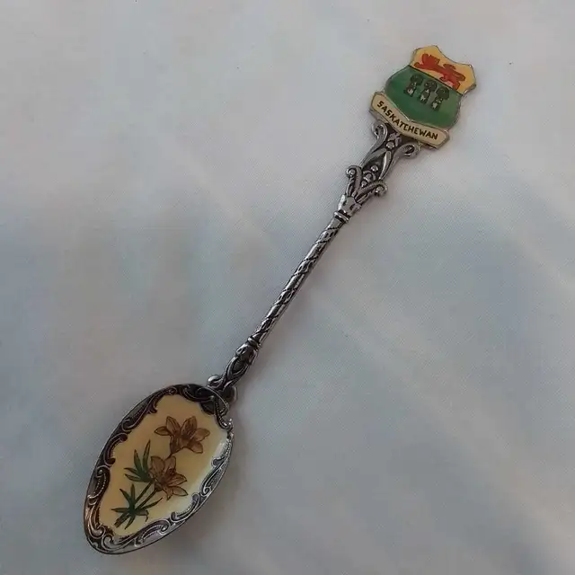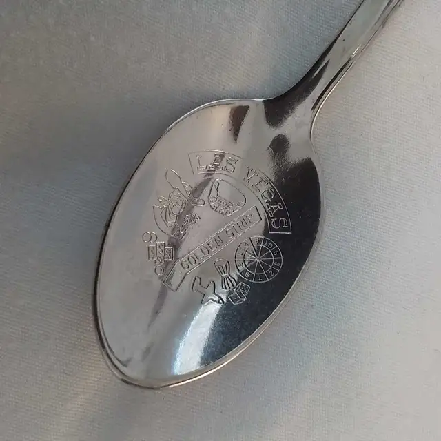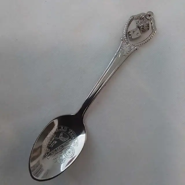 (1) Inca spoon. Vallarta. Nice design. Marked Mexico Alpaca (2) Saskatchewan enamel. Marked Czechoslovakia. Beautiful design (3) Las Vegas golden strip (2 hanging dice). Like new