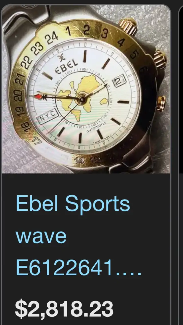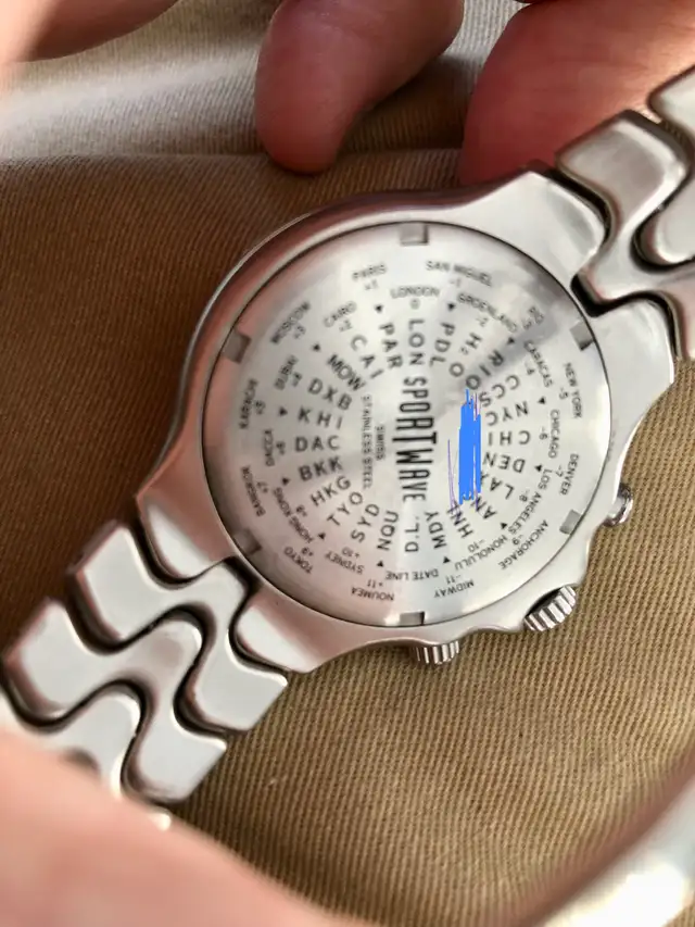 EBEL SportWave wristwatch. Fully functioning Chronograph movement as well as multi-time zone functions with just a push of a button. Night time illuminated display in the dark as well as under water.